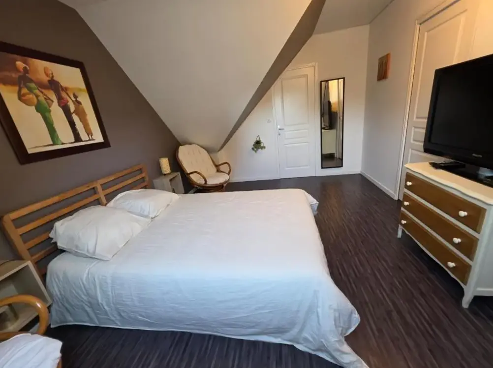Hébergements spacieux : Le Logement sur la Loire à vélo à Montlouis-sur-Loire propose des chambres familiales spacieuses avec vue sur le jardin. Ce séjour chez l'habitant dispose de la climatisation, d'une salle de bains privative et d'une connexion Wi-Fi gratuite. Commodités et installations : Les clients bénéficient de l'utilisation gratuite de vélos, d'un jardin et d'un coin salon extérieur. Les installations supplémentaires comprennent un parking à vélos, un parking privé gratuit sur place et un coin repas. Emplacement et attractions : Situé à 21 km de l'aéroport de Tours Val de Loire, l'établissement se trouve à proximité du parc des expositions de Tours (10 km), du château d'Amboise (12 km) et de la basilique Saint-Martin (14 km).